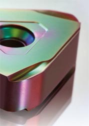 Estos grosores hacen que el Óxido de Aluminio se convierte en un prisma de luz. Así el inserto brilla en rojo o verde; constituyendo una referencia visible del estado y calidad del revestimiento (durante el proceso de mecanizado de la herramienta que lo equipa).
